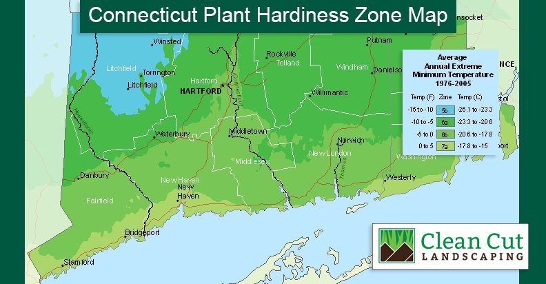 - Inland and northern parts like Hartford and Litchfield fall into Zones 5b and 6a.