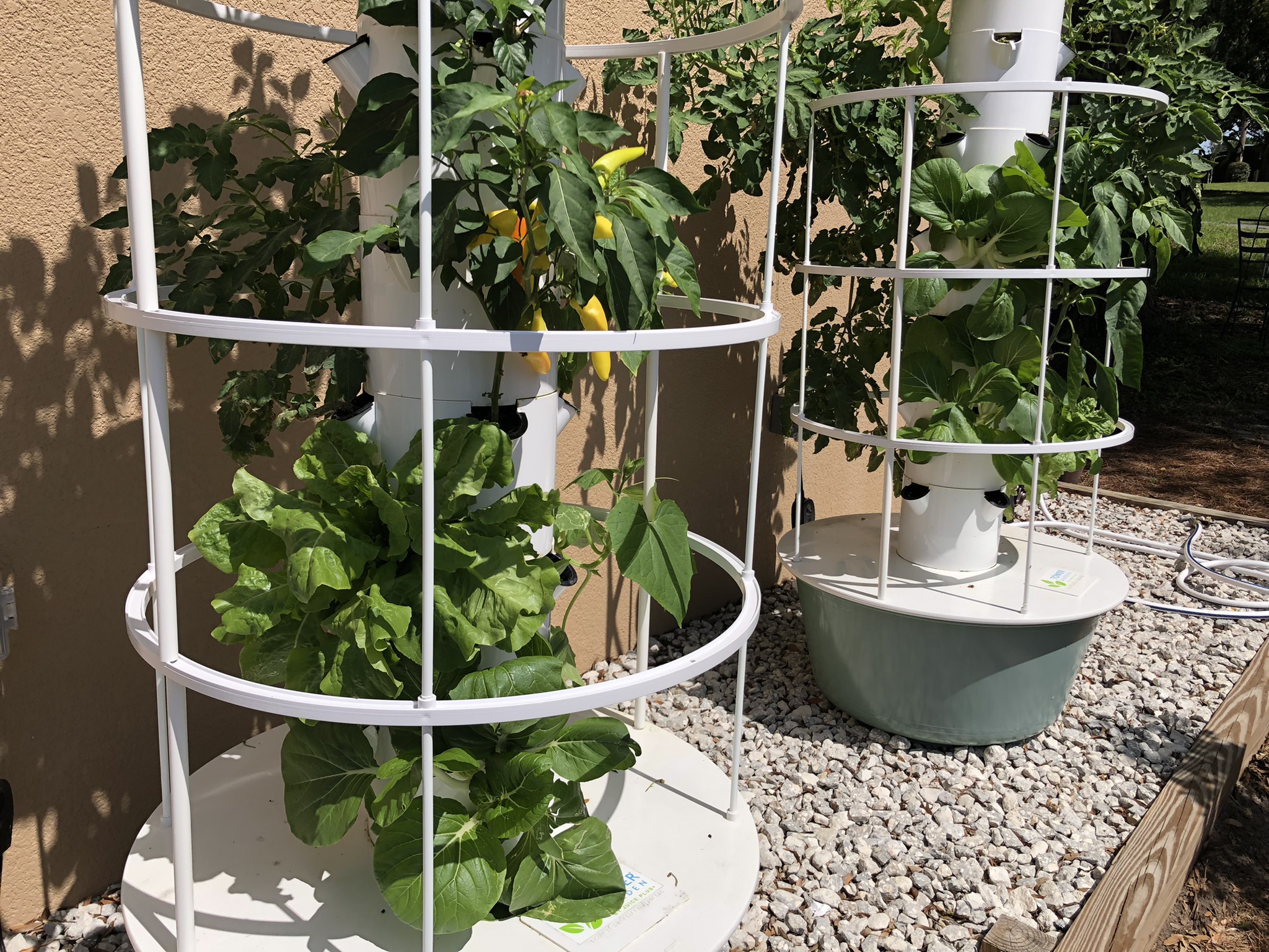 Garden towers dry out faster than traditional beds. Use drip irrigation or self-watering systems to maintain consistent moisture without waterlogging.