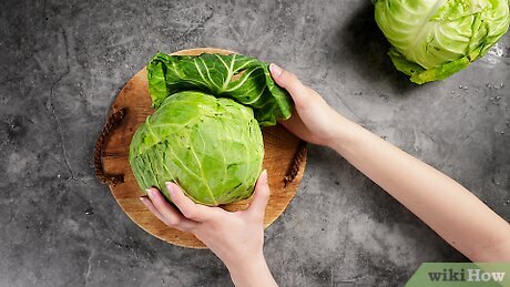 Hold the cabbage head under cold running water. Gently rub the leaves to wash away soil particles. Avoid hot water as it can wilt the leaves.